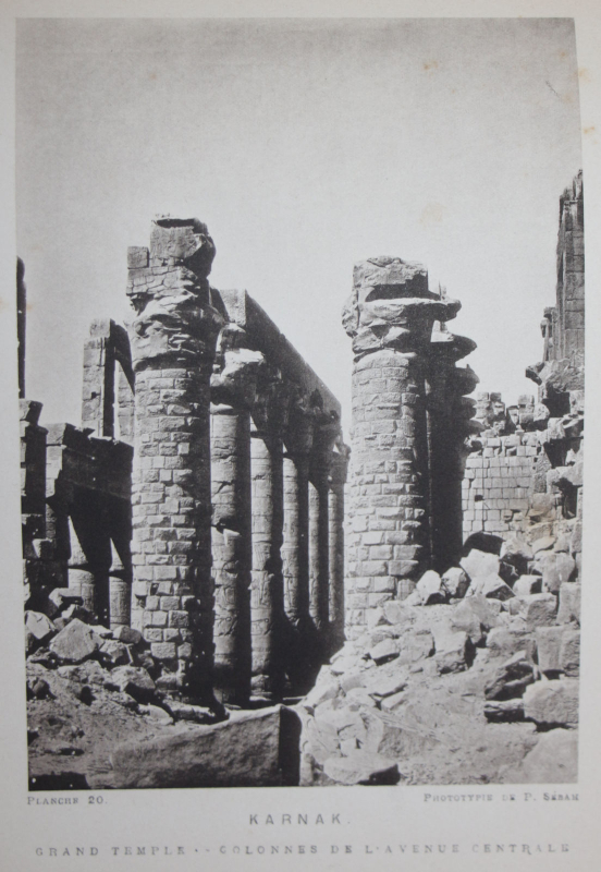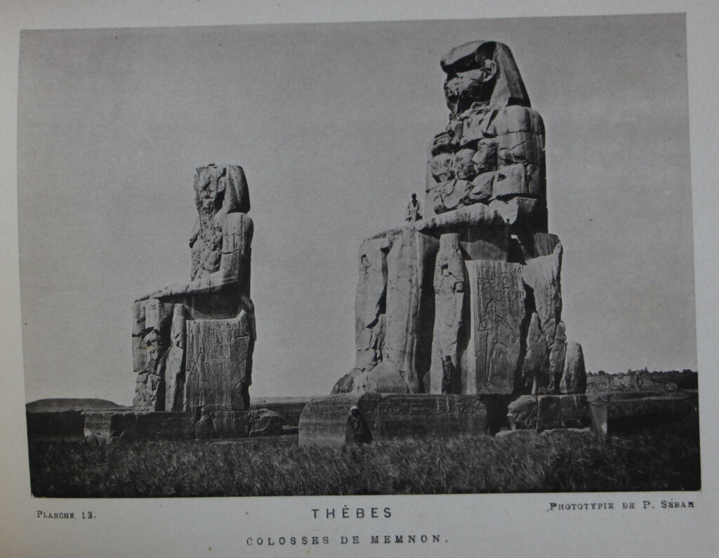 An extremely rare book with auction records neither in ABPC (now Biblio) nor in RBH. We only could trace three records in WorldCat: New York Public Library, Princeton University Library and the Centre Canadien d’Architecture in Montreal. All three copies are identical to our copy; only a cover title and no title page. Hence all details like printer, place and year of publication, etc. are unknown. Usually the book is assumed to have been published in the 1890’s, however, we would like to date it in the 1870’s or early 1880’s based on the style of the binding, the imprint “phototypie de P. Sébah” and the fact that the phototype process already had been developped in the 1850’s, either by Adolphe Poitevin or by William Henry Fox Talbot and thus had been available already for quite some time. Pascal Sébah was born in 1823, set up his first photostudio in 1857 and died in 1886. According to information in the library catalogue of Brown University (Call nr. 2-SIZE DT47 .S43 1880) he established his Cairo studio in 1873. It does not seem very likely that the book in this form was published posthumously.