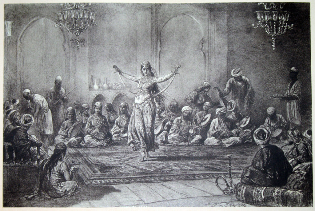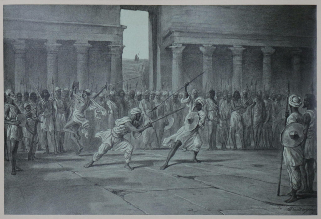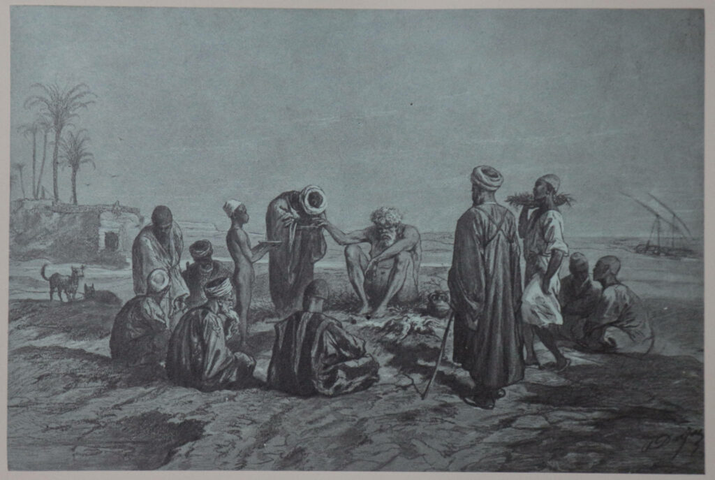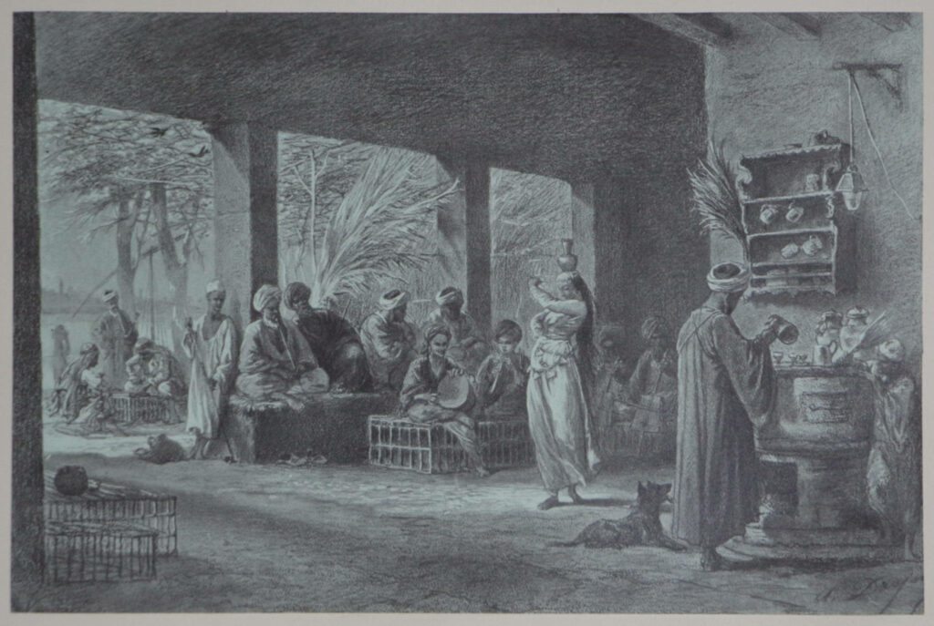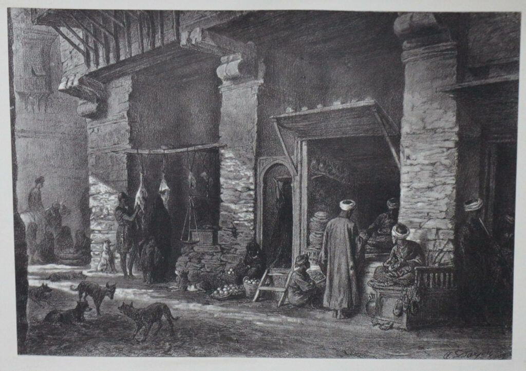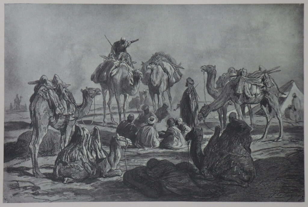 Thirty striking beautiful charcoil plates hors texte by Alfred Henri Darjou (1832-1874), mounted on very heavy card stock within printed borders. The plates are protected by tissue guards on which the titles of the respected plates have been printed. Only 300 copies were printed of this book, of which this is no. 94.