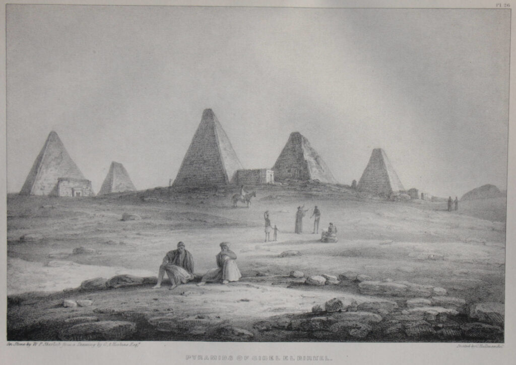 This scarce book is of primary importance as a source of knowledge for Egypt, Nubia and Meroe. After the rediscovery of the city by Frédéric Cailliaud in 1821, this is the first book in English to describe Meroe. The plates depict landscapes, people, plants, ruins, etc. There are plans of the sites visited and much of it has disappeared.