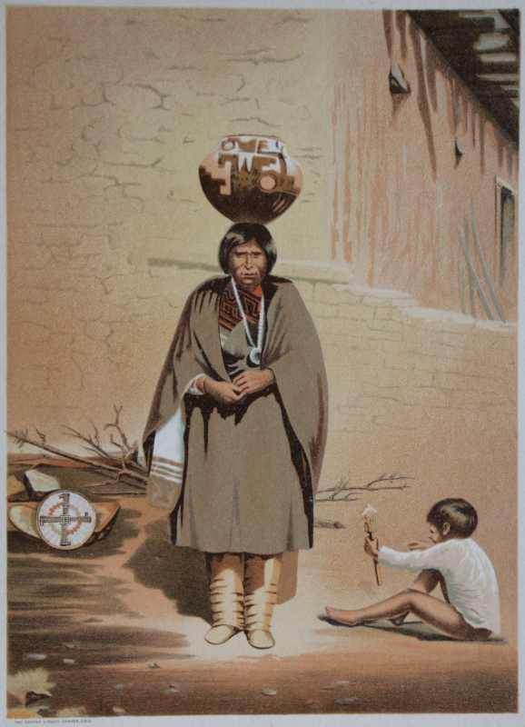 This last chromo of a Zuni Indian actually already was published before in 1881 as the frontispiece of a book published by the Government Printing Office, Washington by Lewis. H. Morgan, titled ‘Houses and House-Life of the American Aborigines’.