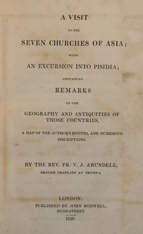 Full title: A Visit to the Seven Churches of Asia; with an Excursion into Pisidia; containing Remarks on the Geography and Antiquities of those Countries, a Map of the Authors Routes, and numerous Descriptions.