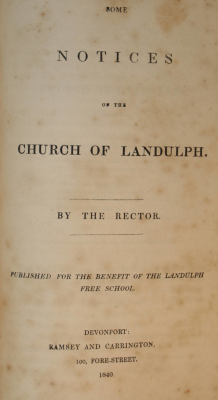 Bound with: Some notices on the Church of Landulph. By the rector. Devonport; Ramsey and Carrington, 1840. Pp. 2, 46, 2.