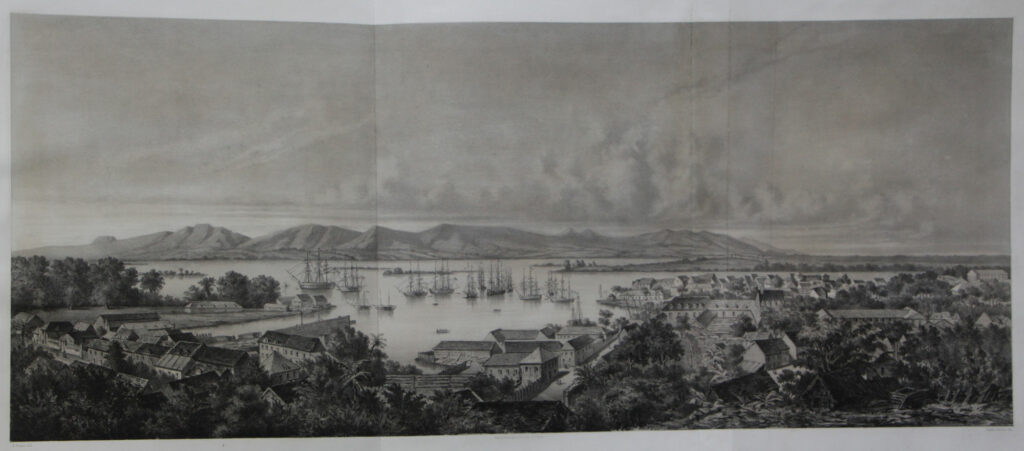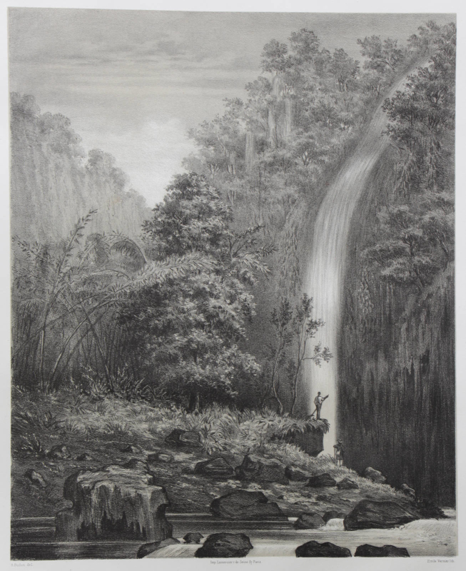 Lacking the printed title page, otherwise complete, including the extra lithographed title page. The two half title pages, with a vignette only of a laurel-wreath around the name of “Karukera” (island of beautiful waters), are present, followed by the descriptive text.