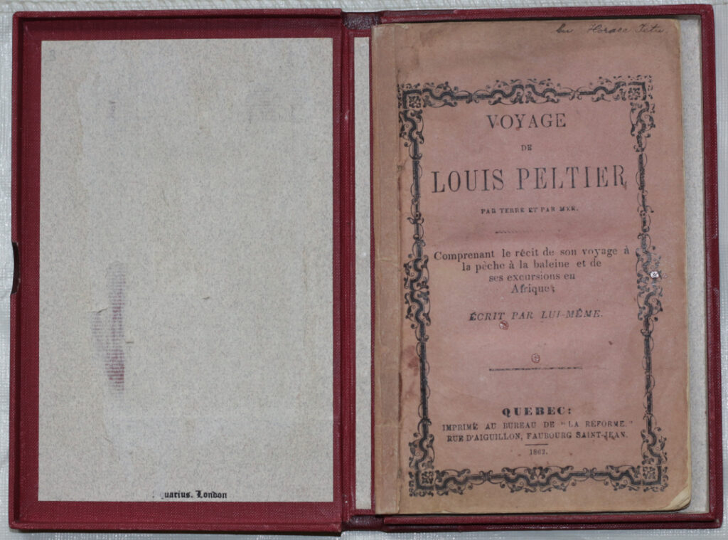 Voyage de Louis Peltier par terre et par mer. Comprenant le récit de son voyage à la pèche à la baleine et de ses excursions en Afrique.