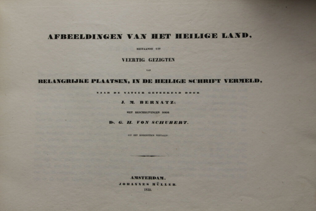For this edition the text by Von Schubert was translated into Dutch, while the original stones of the German edition have been used, hence the captions under the plates are in German. What makes this Dutch edition more attractive than the original German edition is the paper format. Although the lithographs are the same, the Dutch edition has been printed and bound as a folio edition, resulting in much wider margins. The size of the German quarto edition is about 25 x 32 cm, so quite obviously much smaller than this edition.