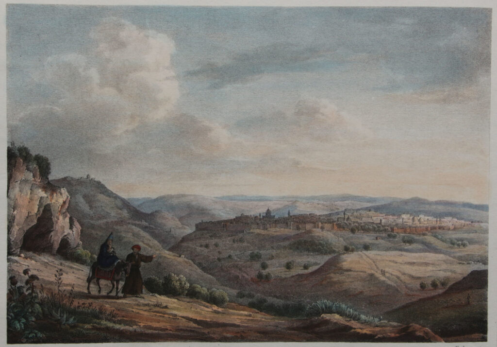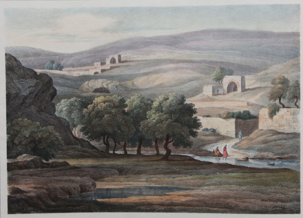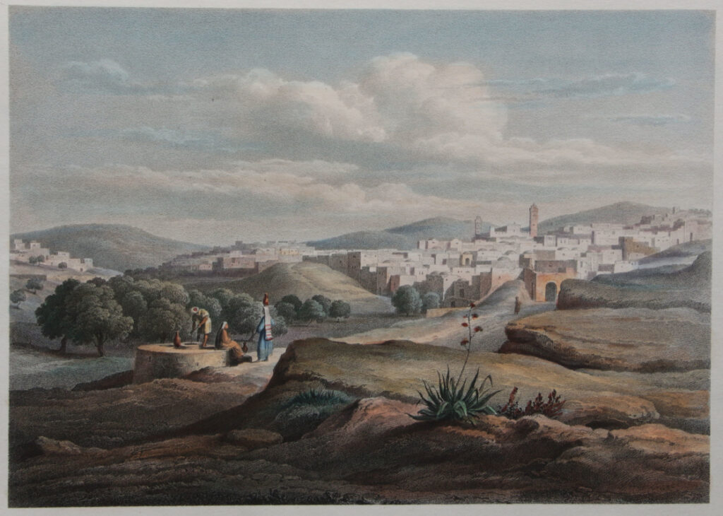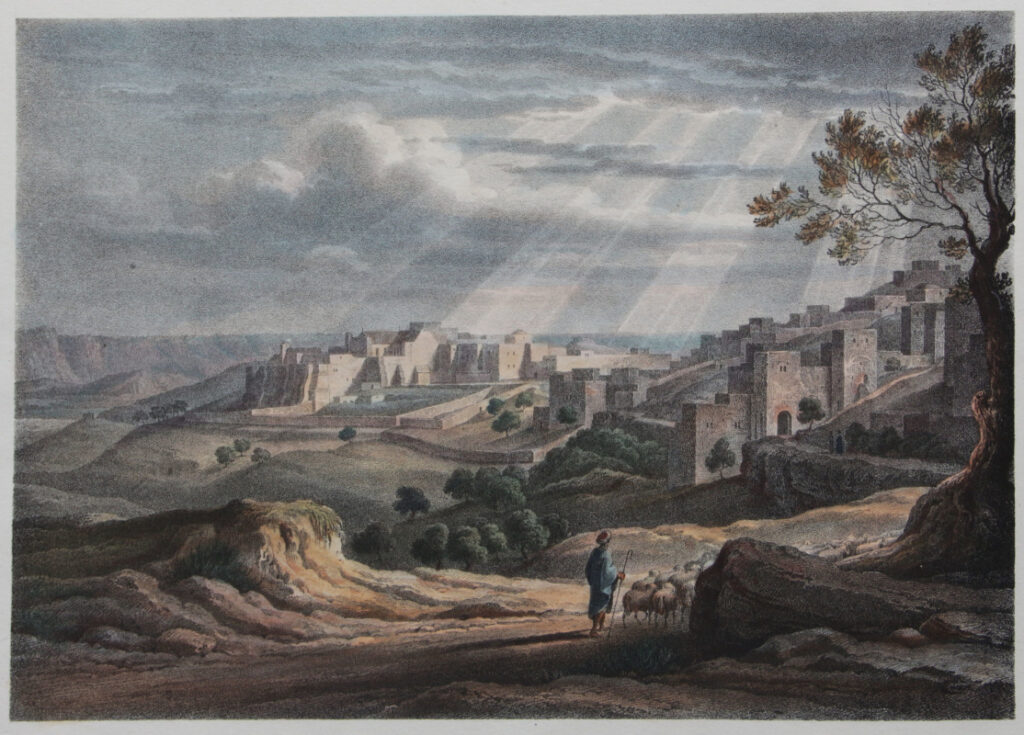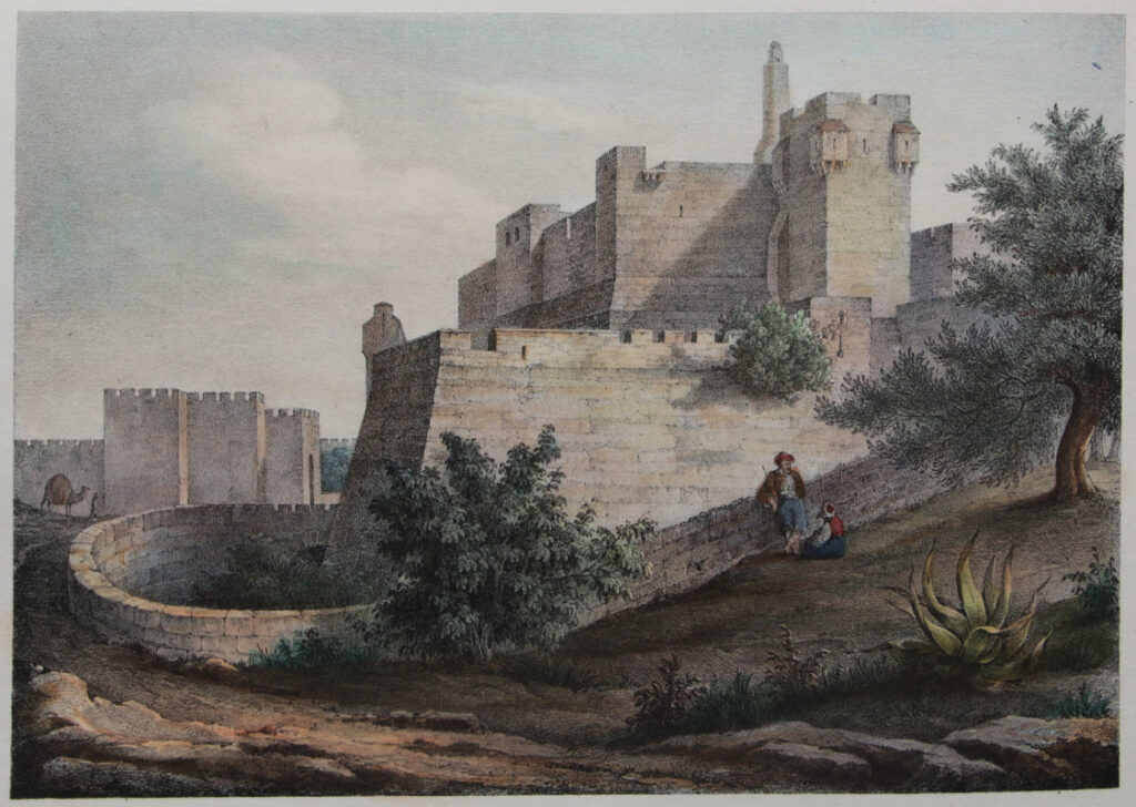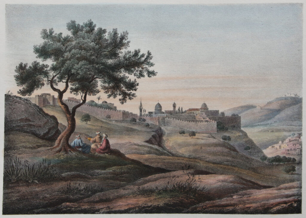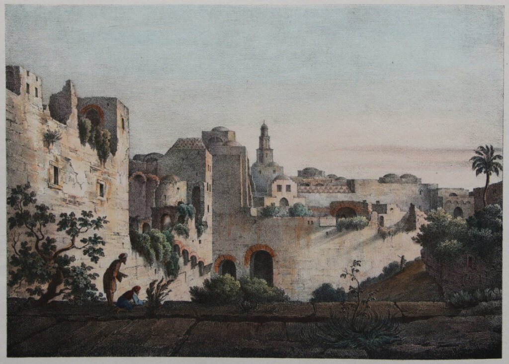 Despite the title, only 23 of the 40 plates depict places in the “Holy Land” (Palestine), including a spectacular view in the evening sun on Jerusalem (may-be one of the most beautiful colour pictures ever published on early 19th century Jerusalem [pict. #21 here below]). The other 17 plates depict places like Heliopolis, Ephesus, Damascus, etc.