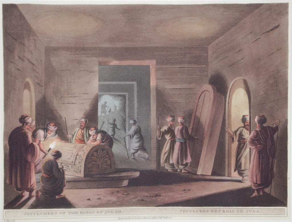 Of these 24 plates the plates nr. 11 (“Entrance to the Sepulchres of the Kings of Judah”) and nr. 12 (“Sepulchres of the Kings of Judah”) have been bound in the wrong sequence, while plate nr. 19 (“The principal Street in Bethlehem”) is facing page 43 instead of page 42. All the other plates have been bound in at their proper position.