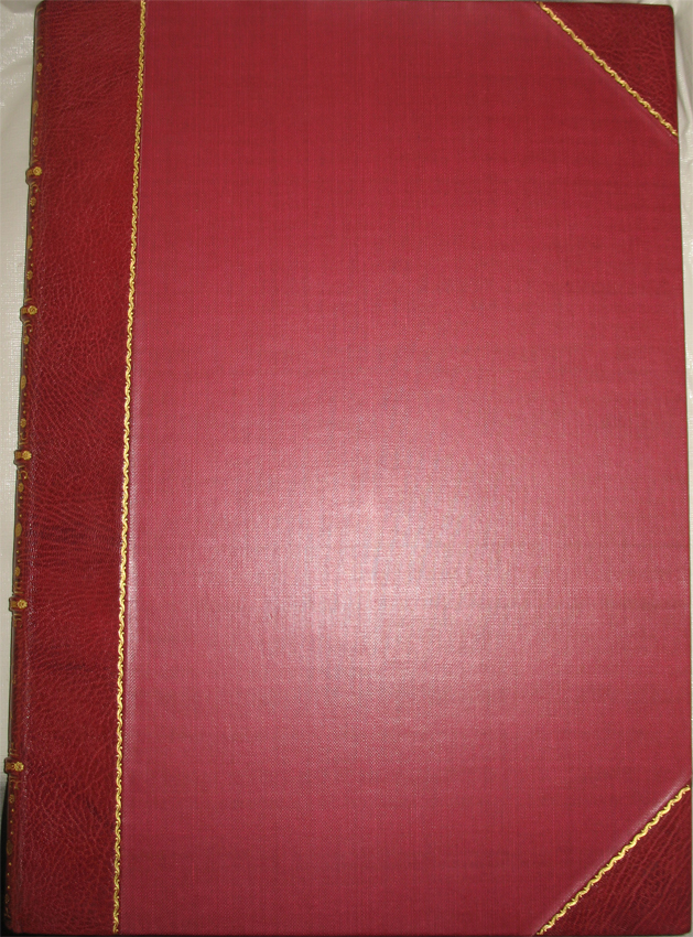 Modern half morocco, folio, pp. i, (1), 47, 1 (= index of the plates), 2 preliminary and trailing blanks and 24 aquatints, finely coloured by hand. In slipcase. The spine divided by five gilt tooled raised bands into six compartments. All compartments elaborately gilt with the titles in the second compartment. The boards with gilt rulers along the edges of the leather.