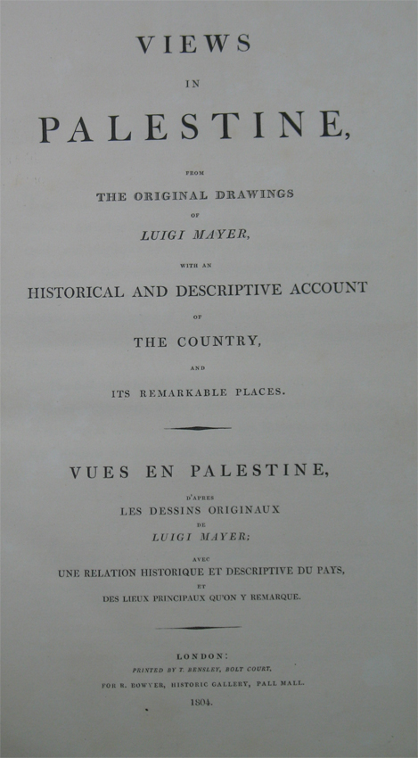 Views in Palestine from the original drawings of Luigi Mayer with an historical and descriptive account of the country and its remarkable places.