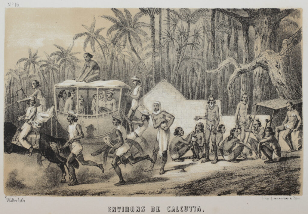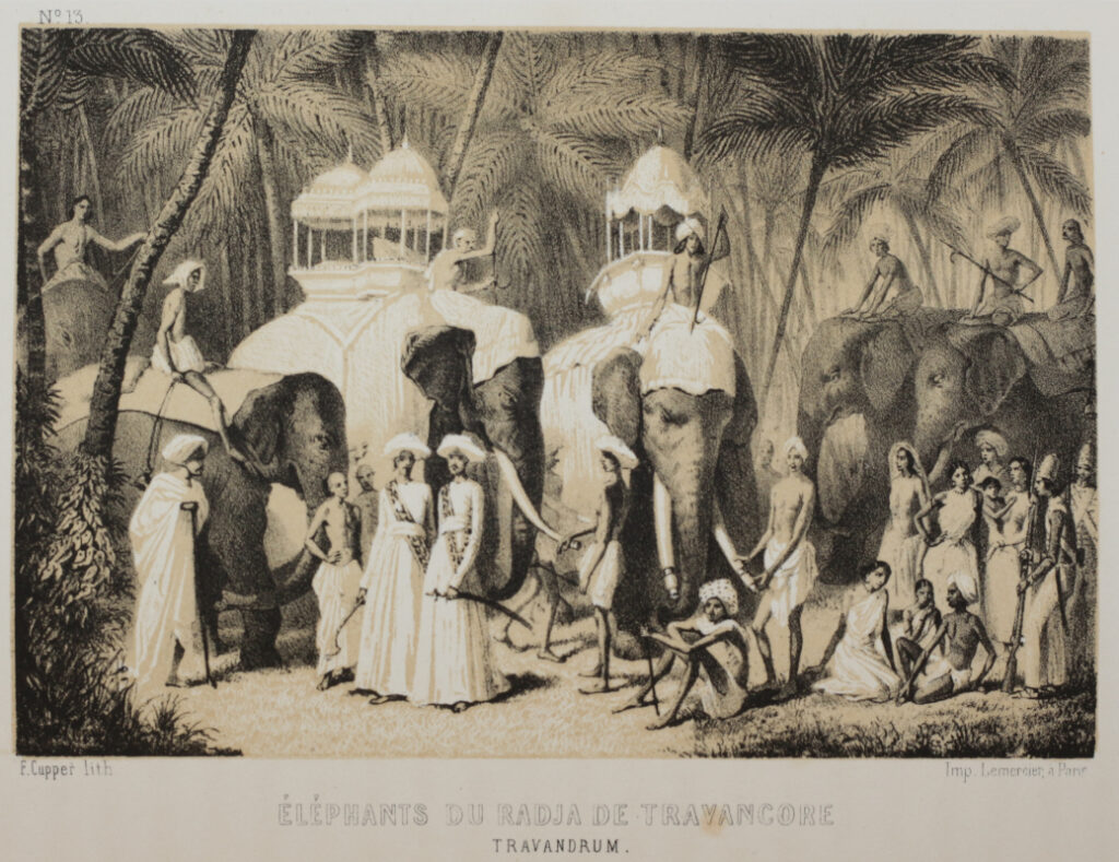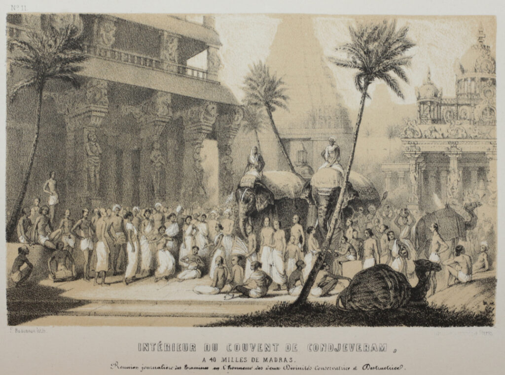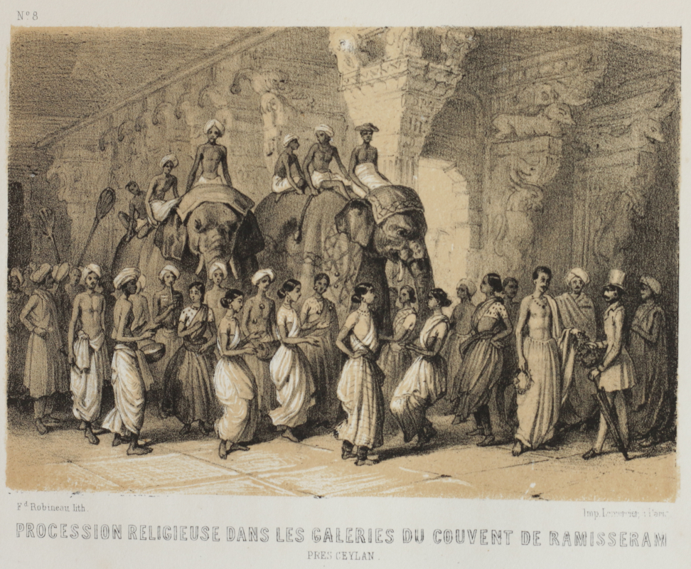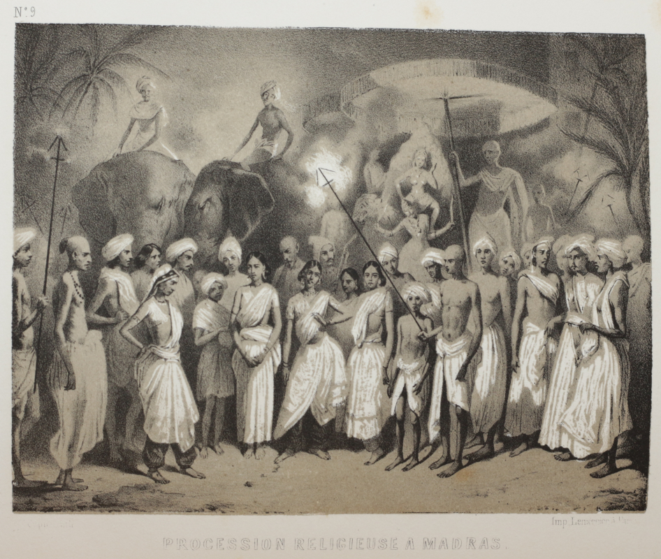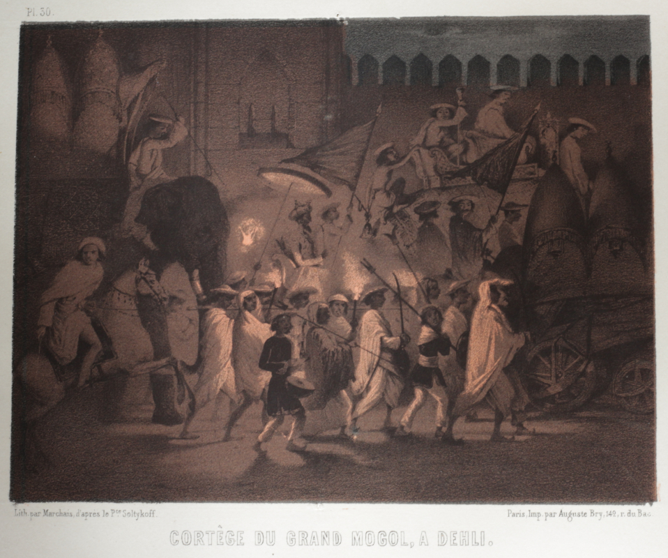 The plates above sometimes differ from colour to colour. For instance plate nr. 9 “Procession religieuse a Madras” almost has no tint, while plate nr. 30 “Cortège du Grand Mogol, à Delhi” almost is coloured red.