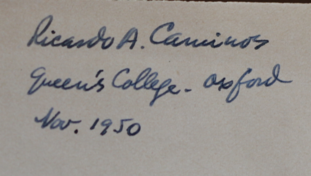 Ricardo Caminos’ ownership inscription in the first edition of “Notes on the story of Sinuhe” by Alan H. Gardiner, published in 1916 by Librairie Honoré Champion. Ricardo Caminos was an Argentine Egyptologist renowned for his expertise in hieroglyphic epigraphy and paleography.