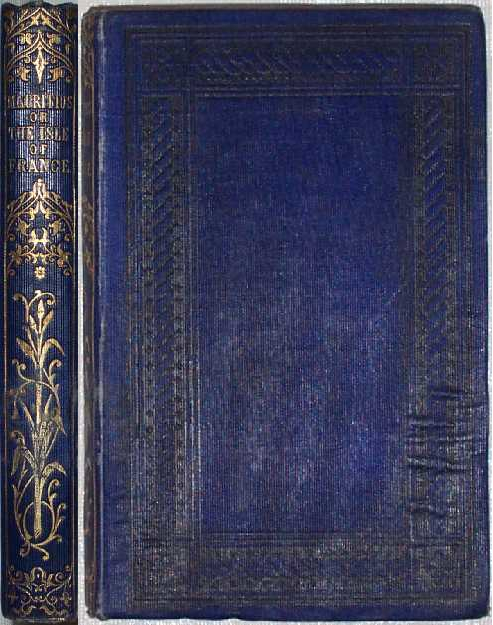 Original blue cloth with black border and gilt decorated spine; royal blue endpapers. An account of the Colony and Island of Mauritius, which has in part been compiled from old and voluminous works, such as Baron Grant’s account, Montgomery Martin’s and other valuable and authentic sources, the remainder being the result of observations made by the author when military chaplain in 1854. The illustrations are partly selected from a portfolio of sketches made at the same time. Overall in very good condition with little wear to head and tail of spine and lightly bumped corners, top edges darkened, gilt a little rubbed on a small part of the lower spine, covers a bit soiled, very light wear to extremities, “SCPK.62.2” written in top margin of frontis, small note on ffep (Tousaint D561 [= bibliographical note]), but overall very clean inside.