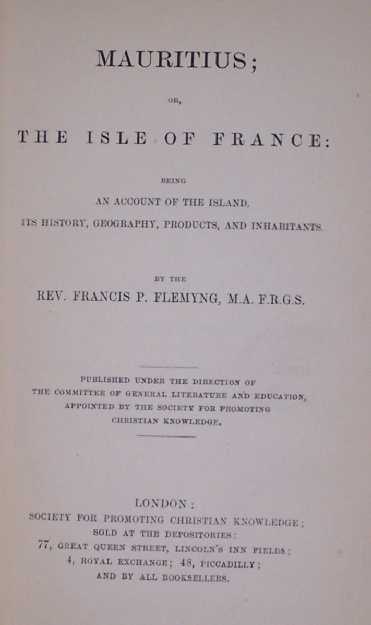 1) Mauritius; or The Isle of France: being an account of the island, its history, geography, products and inhabitants.
